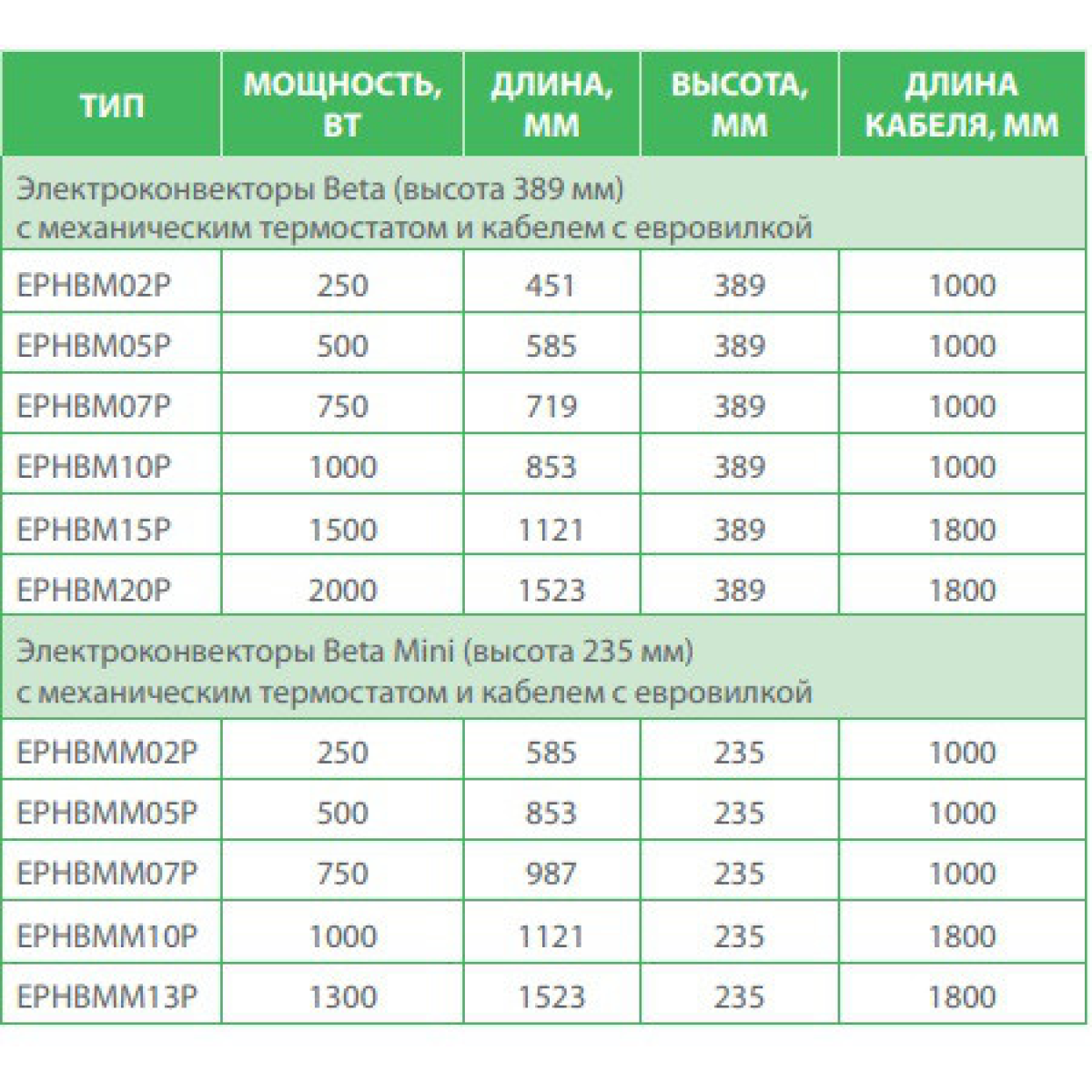 Електричний конвектор Beta, з механічним термостатом і штепсельною вилкою, 750 Вт